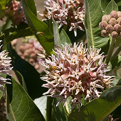 | Flowers: | arranged in often downward-facing umbels, pale green sometimes tinged with violet. Unlike other milkweed species, the flowers of this species have no corona hoods. |